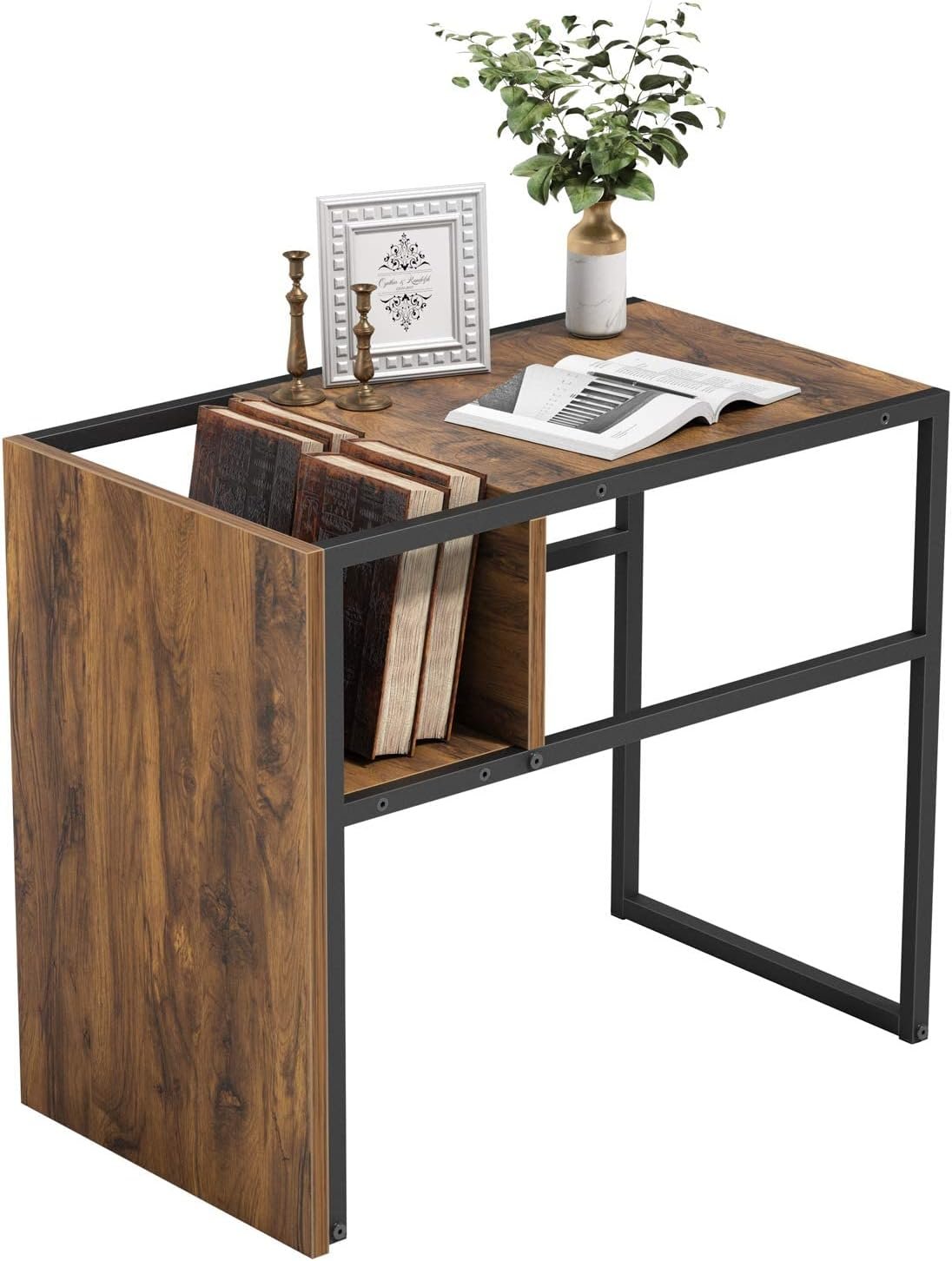 طاولة جانبية للاريكة طاولة قابلة للعكس على شكل حرف C مع رف خشبي، طاولة جانبية لغرفة المعيشة وغرفة النوم ومنضدة جانبية باطار معدني